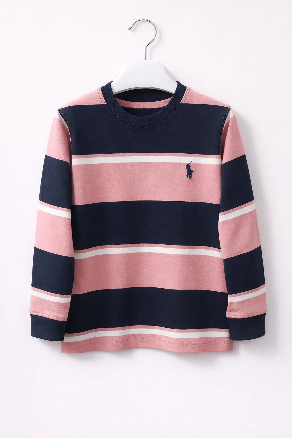 Premium Navy & Pink Striped Long Sleeve T-Shirt