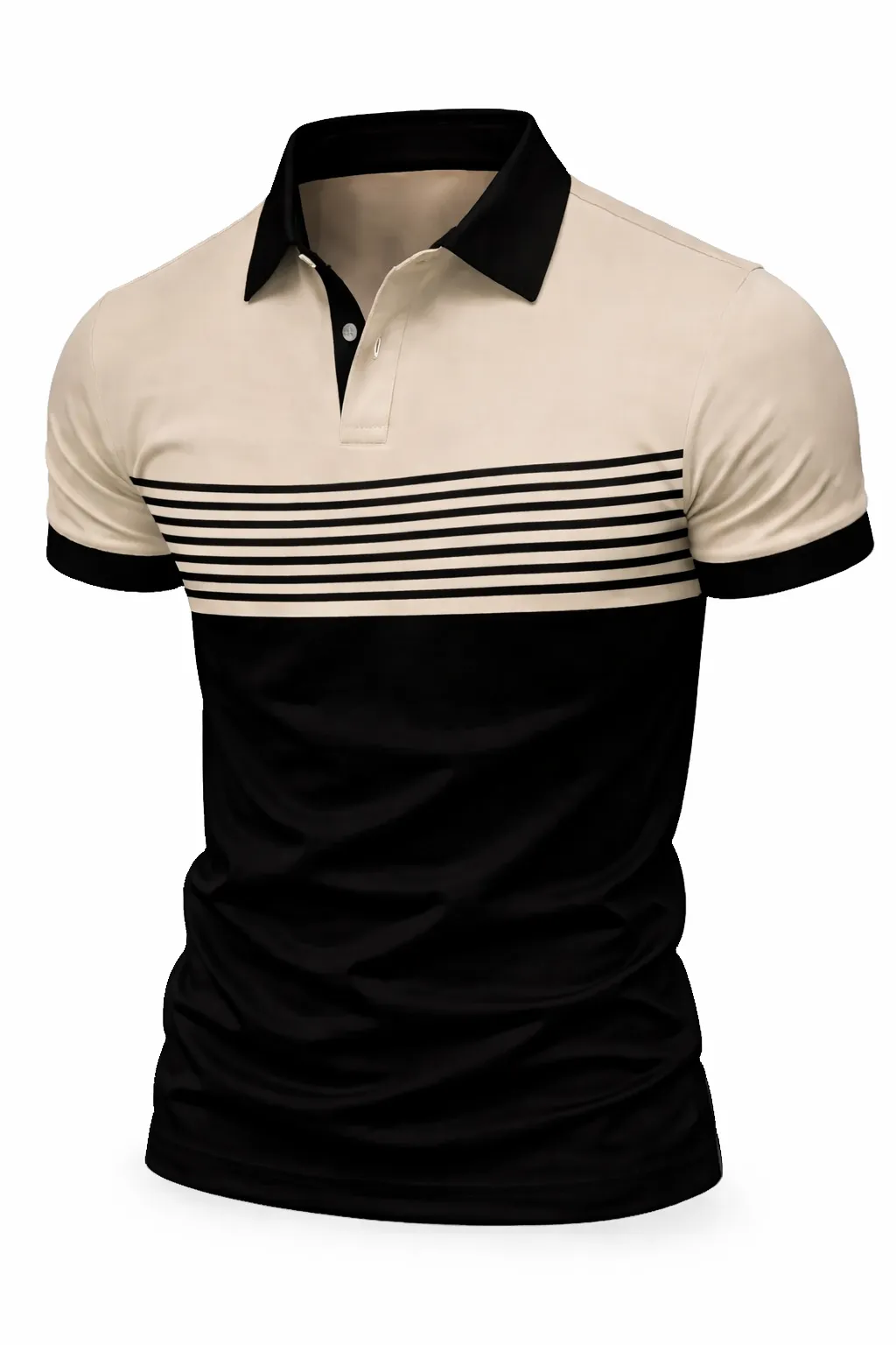 Men’s Black & Beige Striped Polo Shirt – Slim Fit Casual Summer Tee