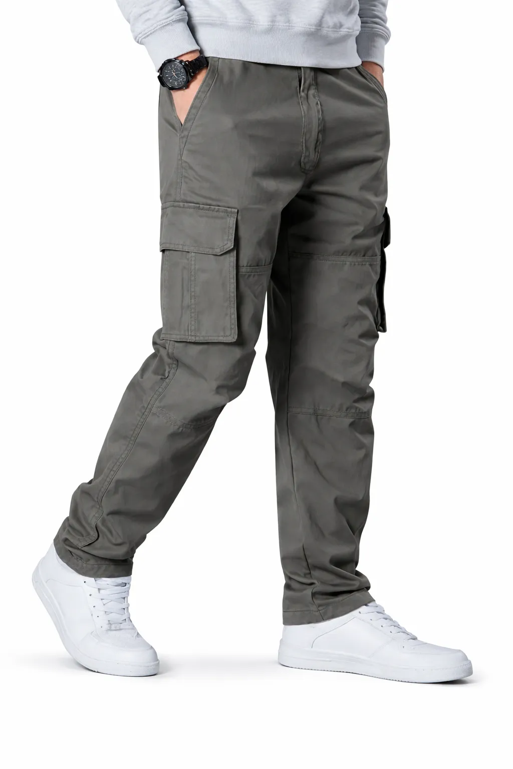 Men’s Grey Cargo Pants – Multi Pocket Tactical Casual Trousers