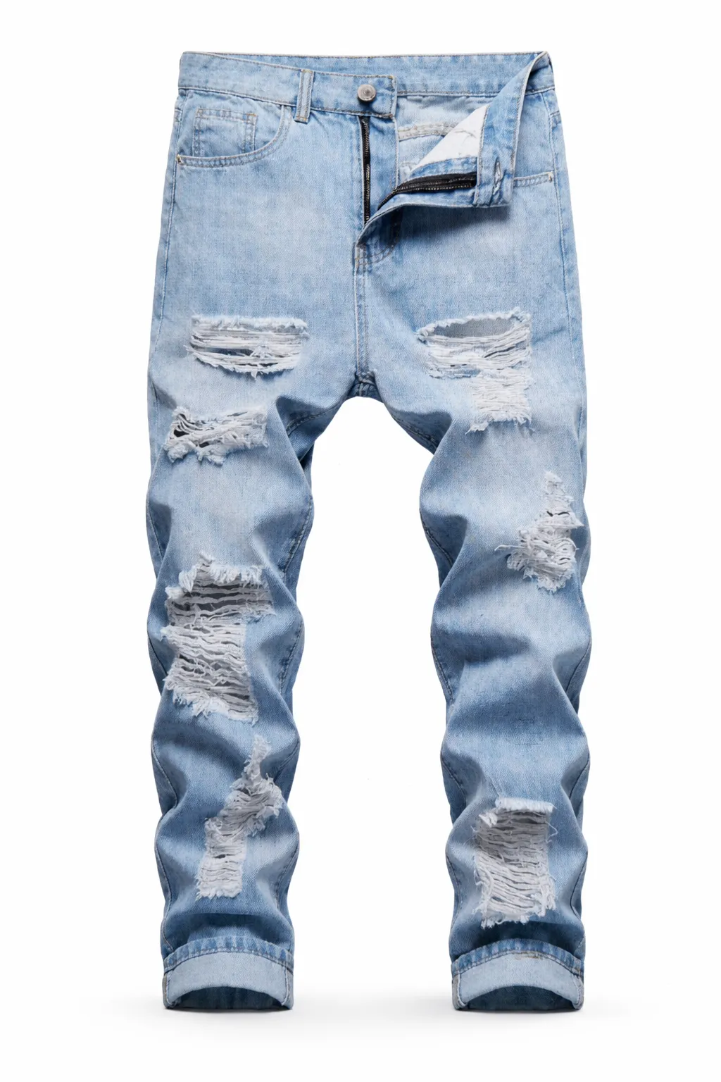 Men’s Light Blue Distressed Ripped Jeans – Slim Fit Denim