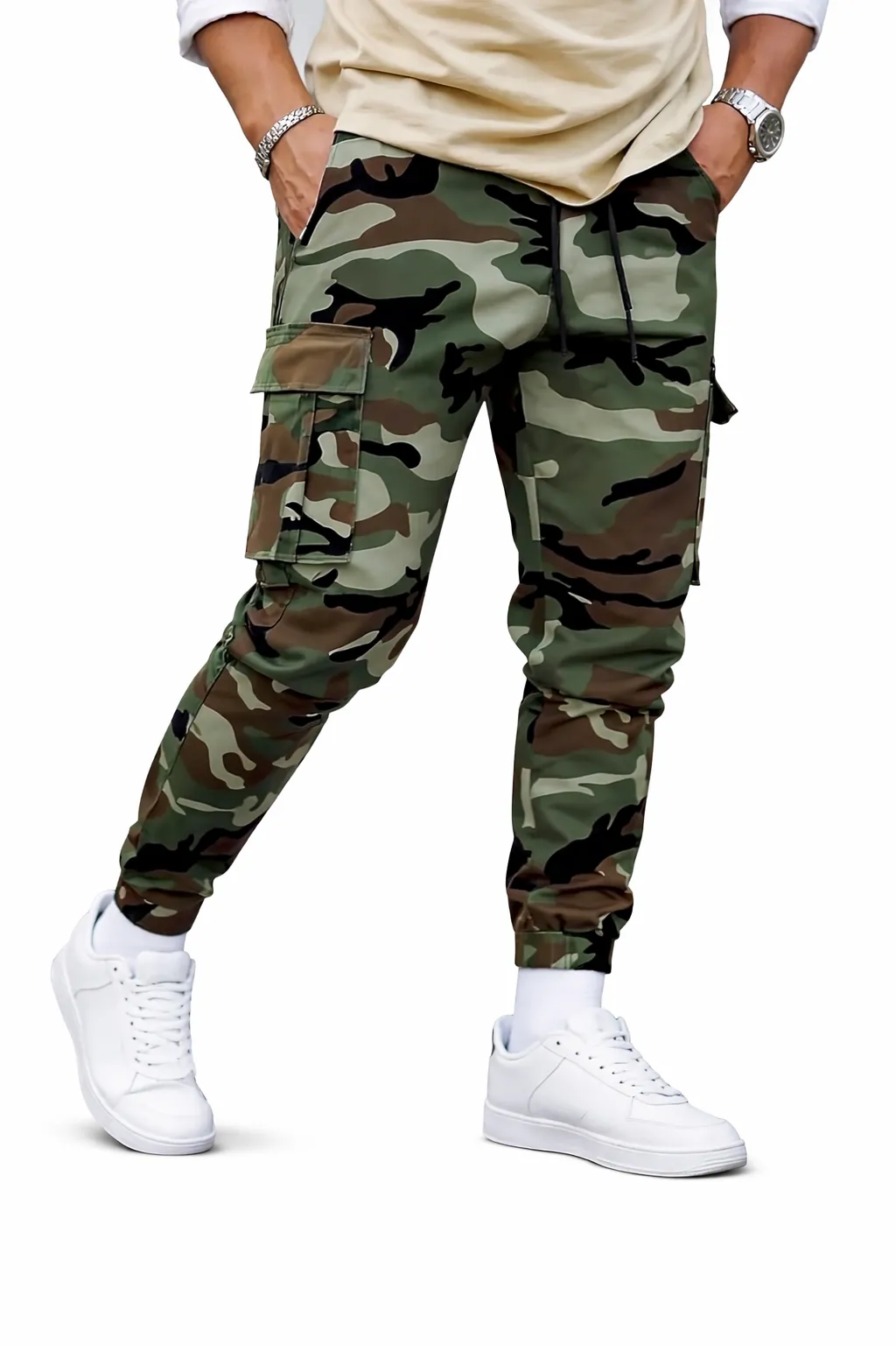 Men’s Camouflage Cargo Jogger Pants – Street Style Multi-Pocket Trousers
