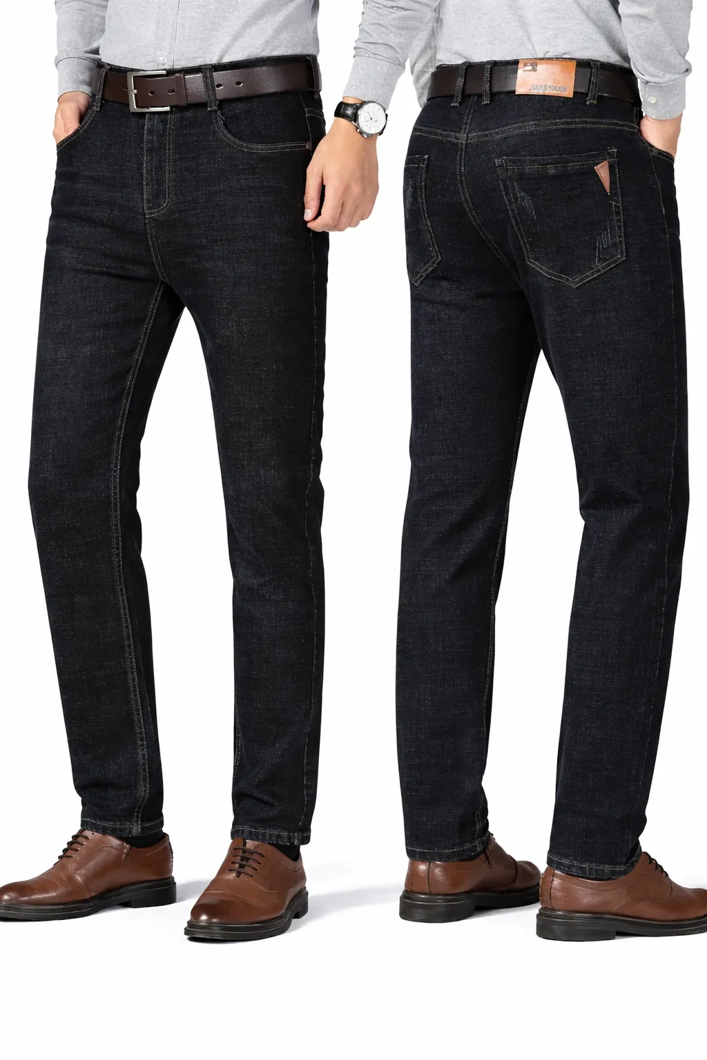 Men’s Black Business Casual Jeans – Mid Waist Regular Fit Stretch Denim Pants