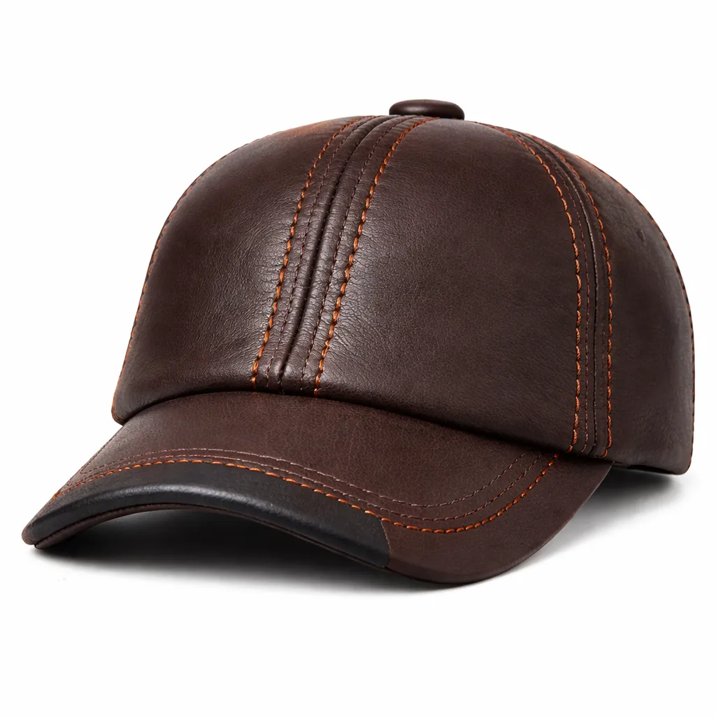 Men’s Premium Brown Leather Baseball Cap