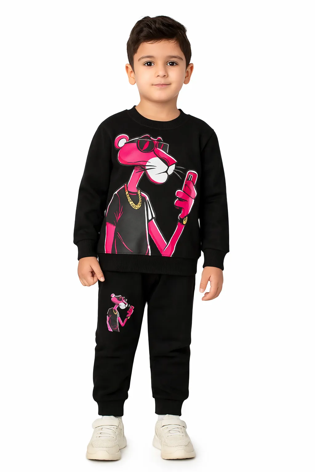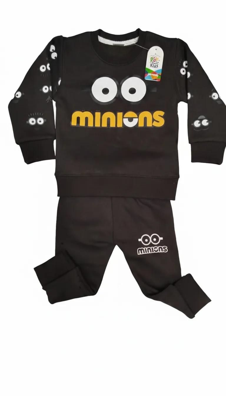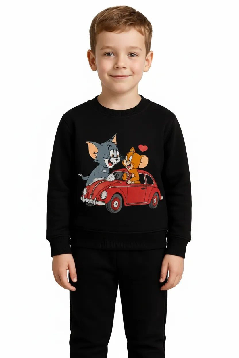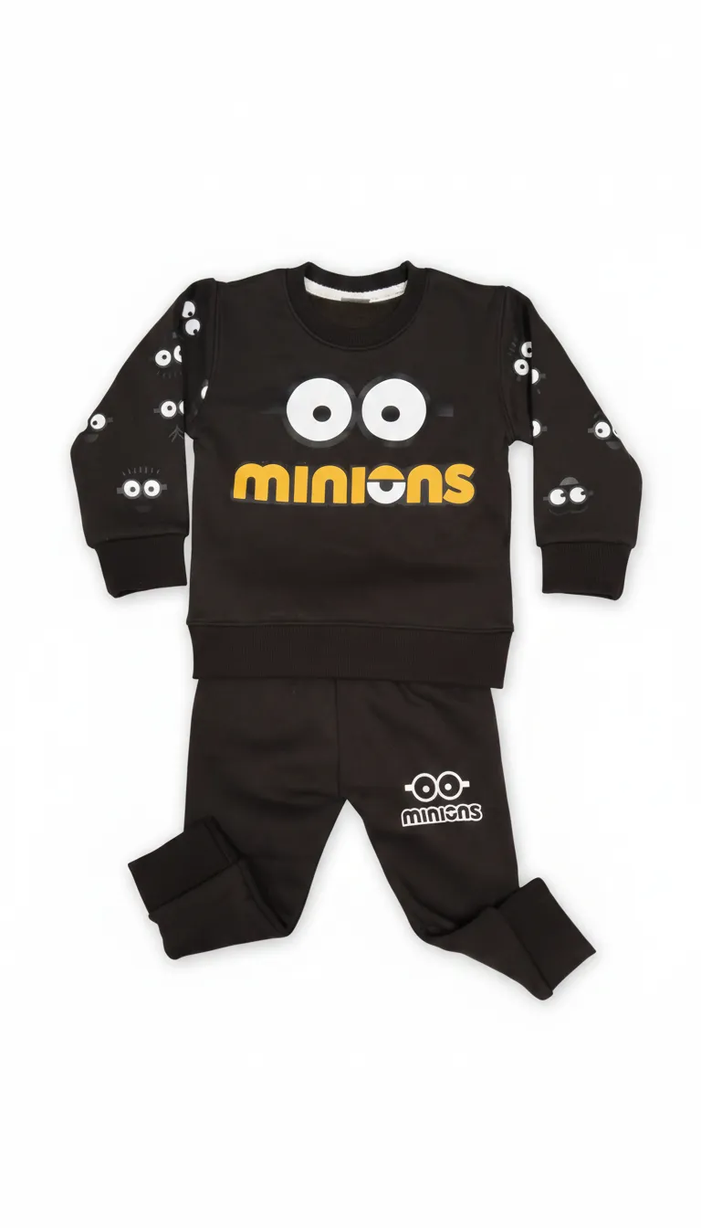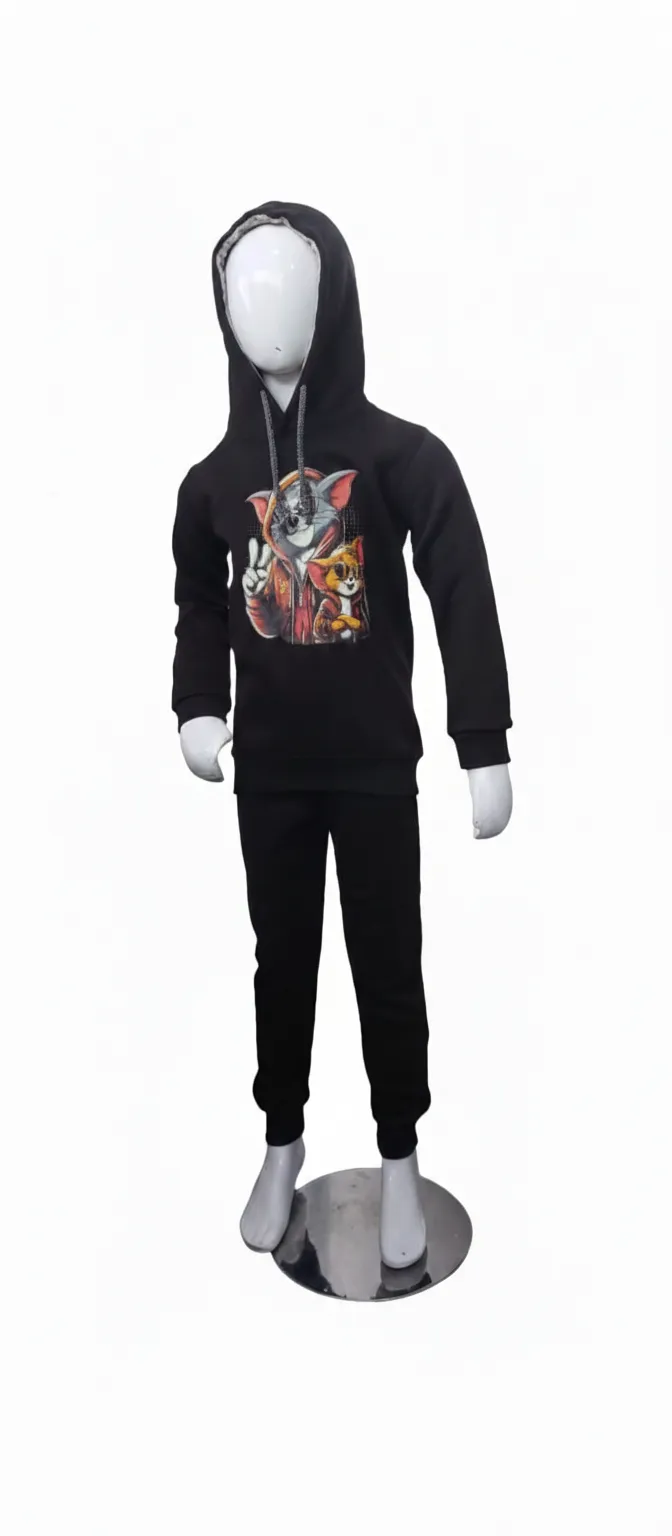 Boys Black Cartoon Tracksuit Set – Trendy Winter Outfit