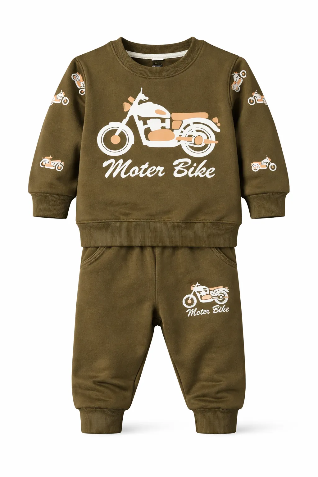 Boys Olive Green Motor Bike Sweatshirt & Jogger Set