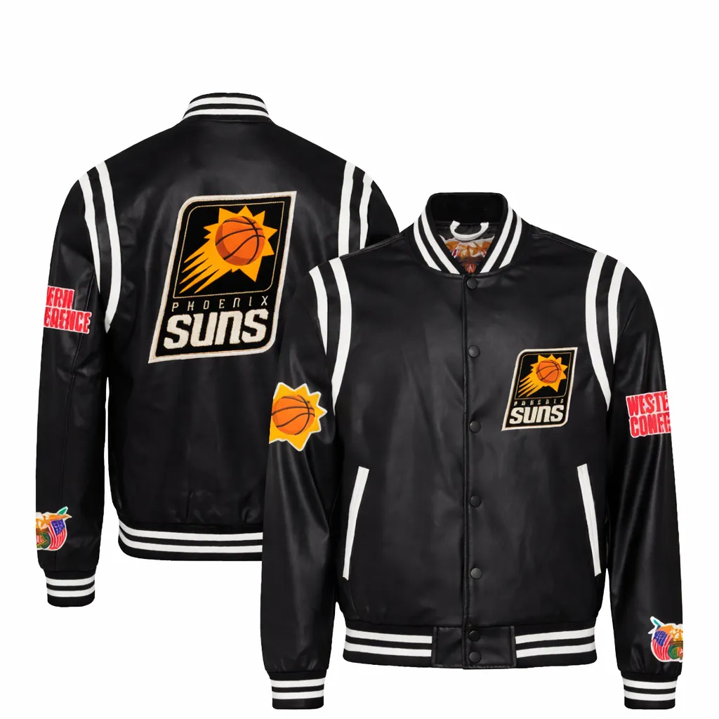 Phoenix Suns Black Leather Varsity Jacket – Premium NBA Edition