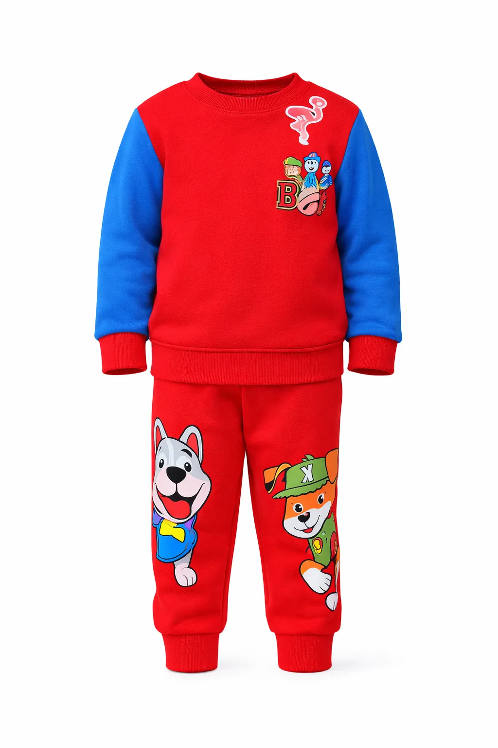 Boys Cartoon Print Winter Tracksuit Set – Blue & Red