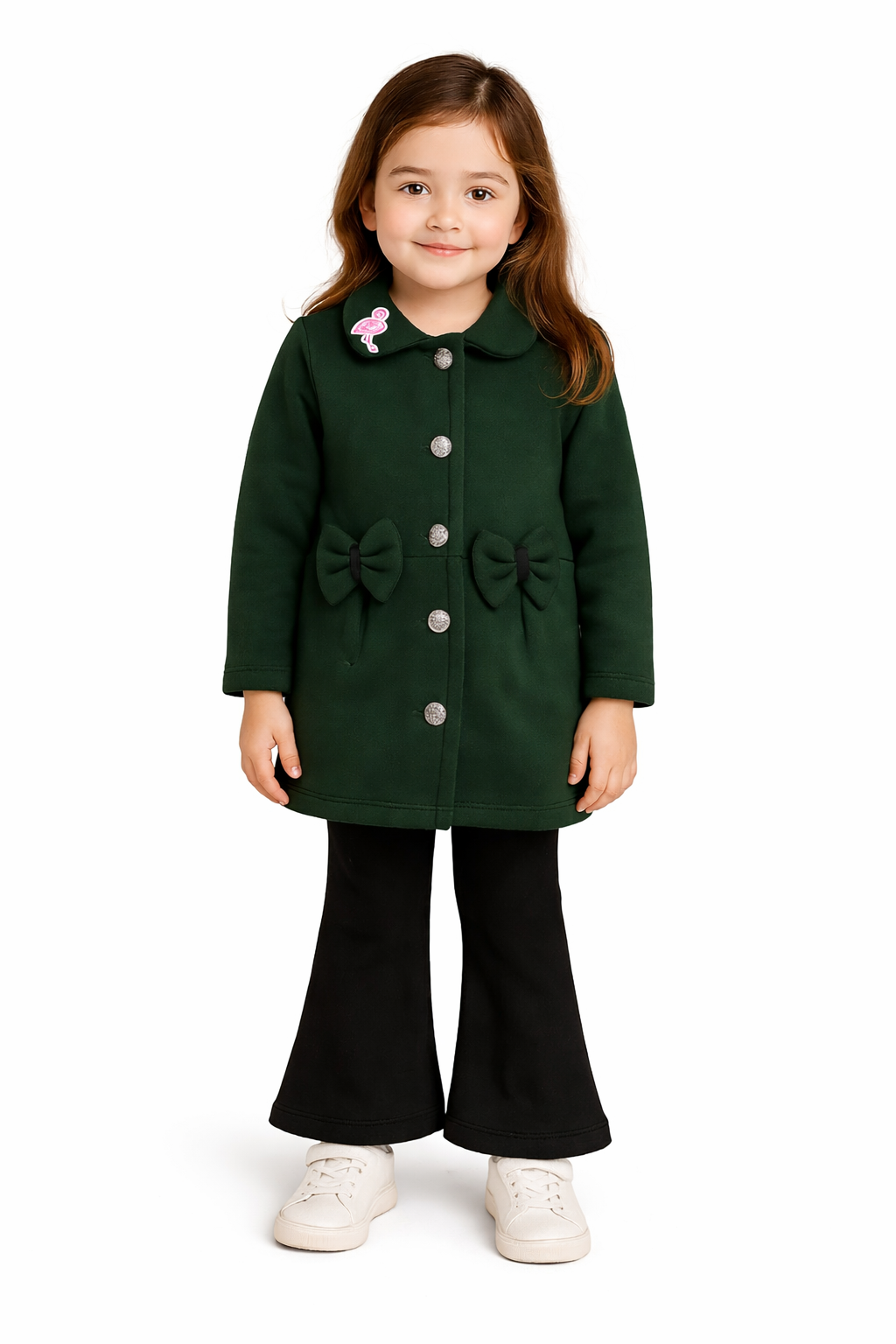 Girls Elegant Green Winter Coat with Bow Detail