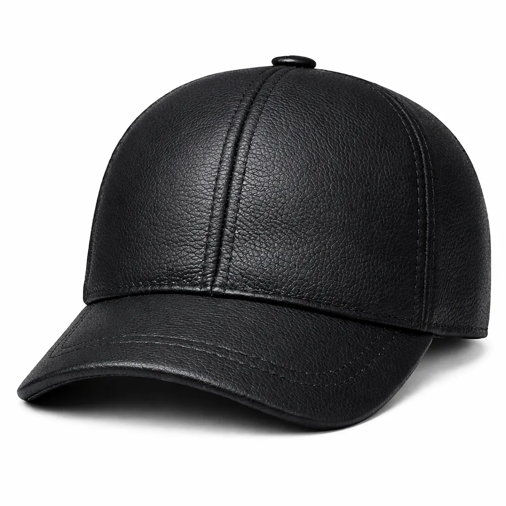 Men’s Premium Black Leather Baseball Cap