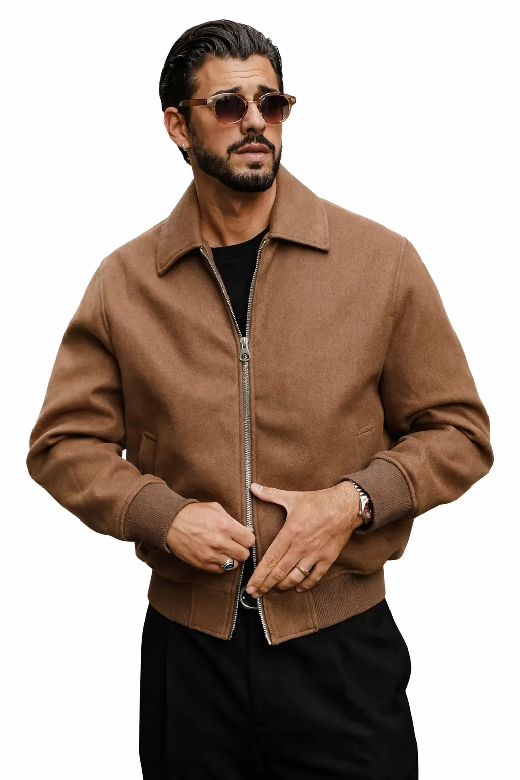 Men’s Camel Wool Zip Jacket – Modern Tailored Fit