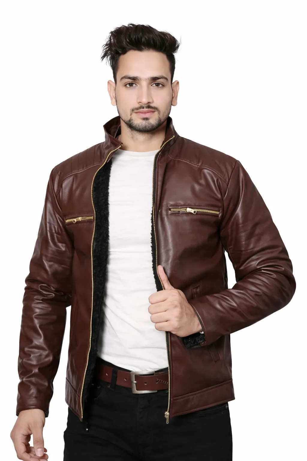 Men’s Brown Leather Jacket – Fur Lined Slim Fit