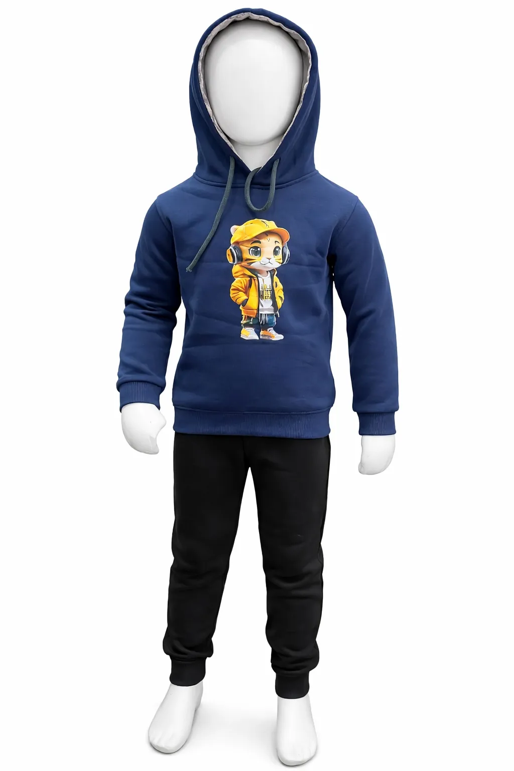 Boys Navy Hoodie & Black Jogger Set – Cartoon Print