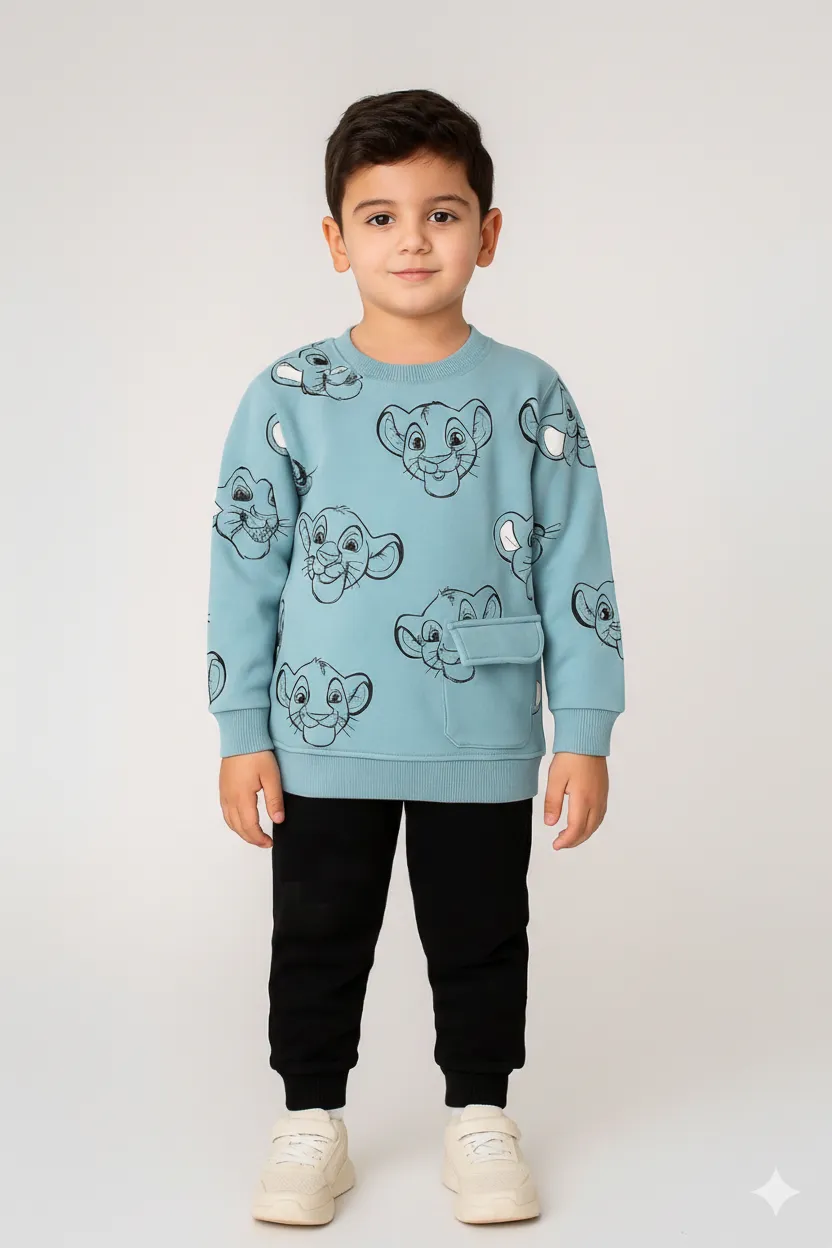 Boys Cartoon Hoodie & Jogger Set – Winter Casual Outfit