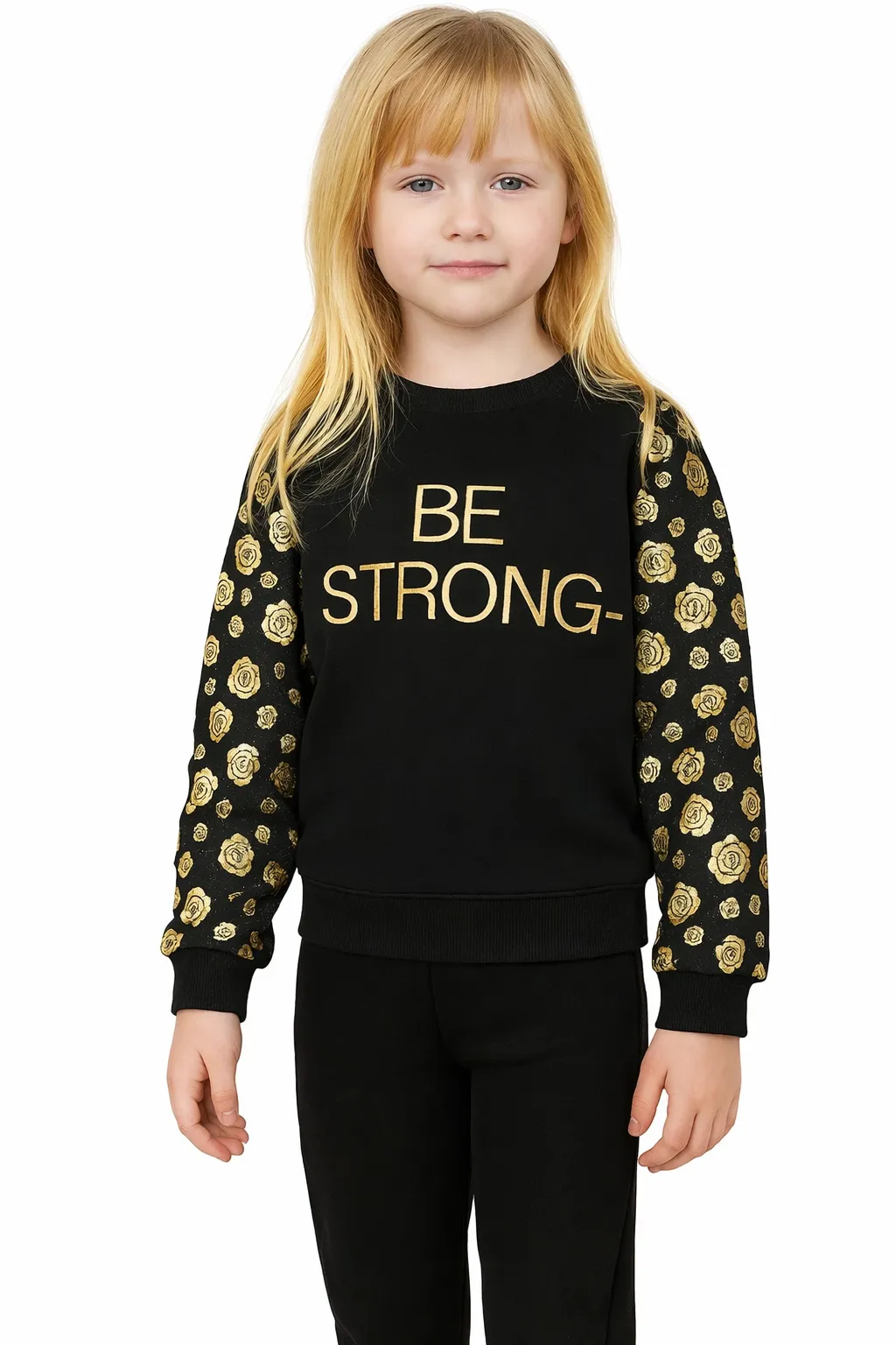 Girls Black “Be Strong” Sweatshirt & Leggings Set