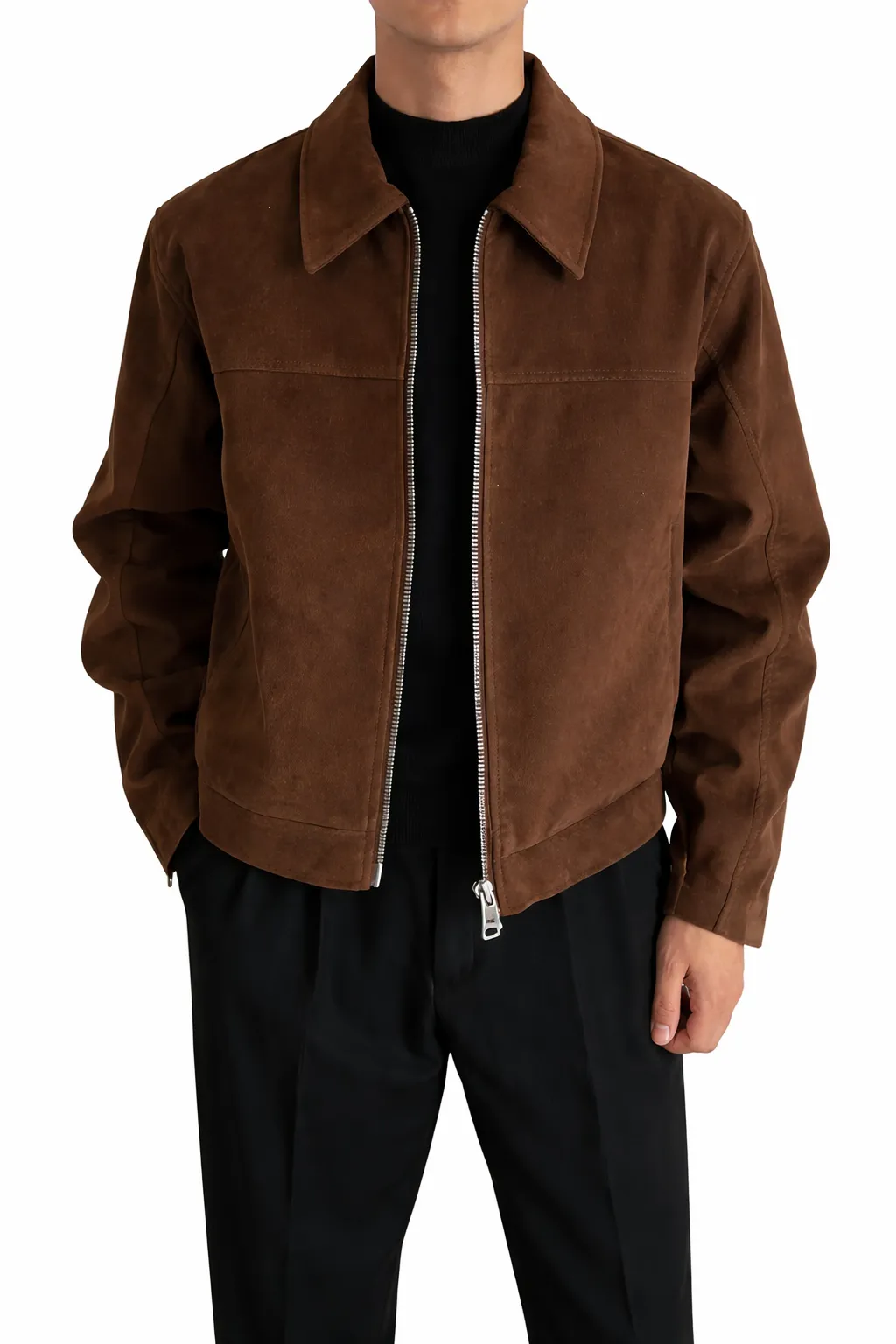 Men’s Brown Suede Jacket – Classic Zip Casual Fit