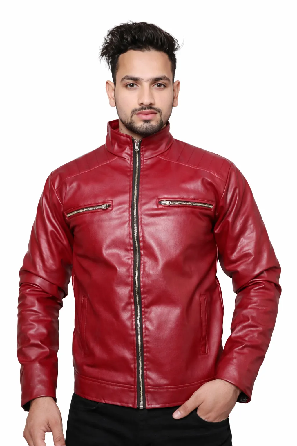 Men’s Red Leather Jacket – Slim Fit Biker Style