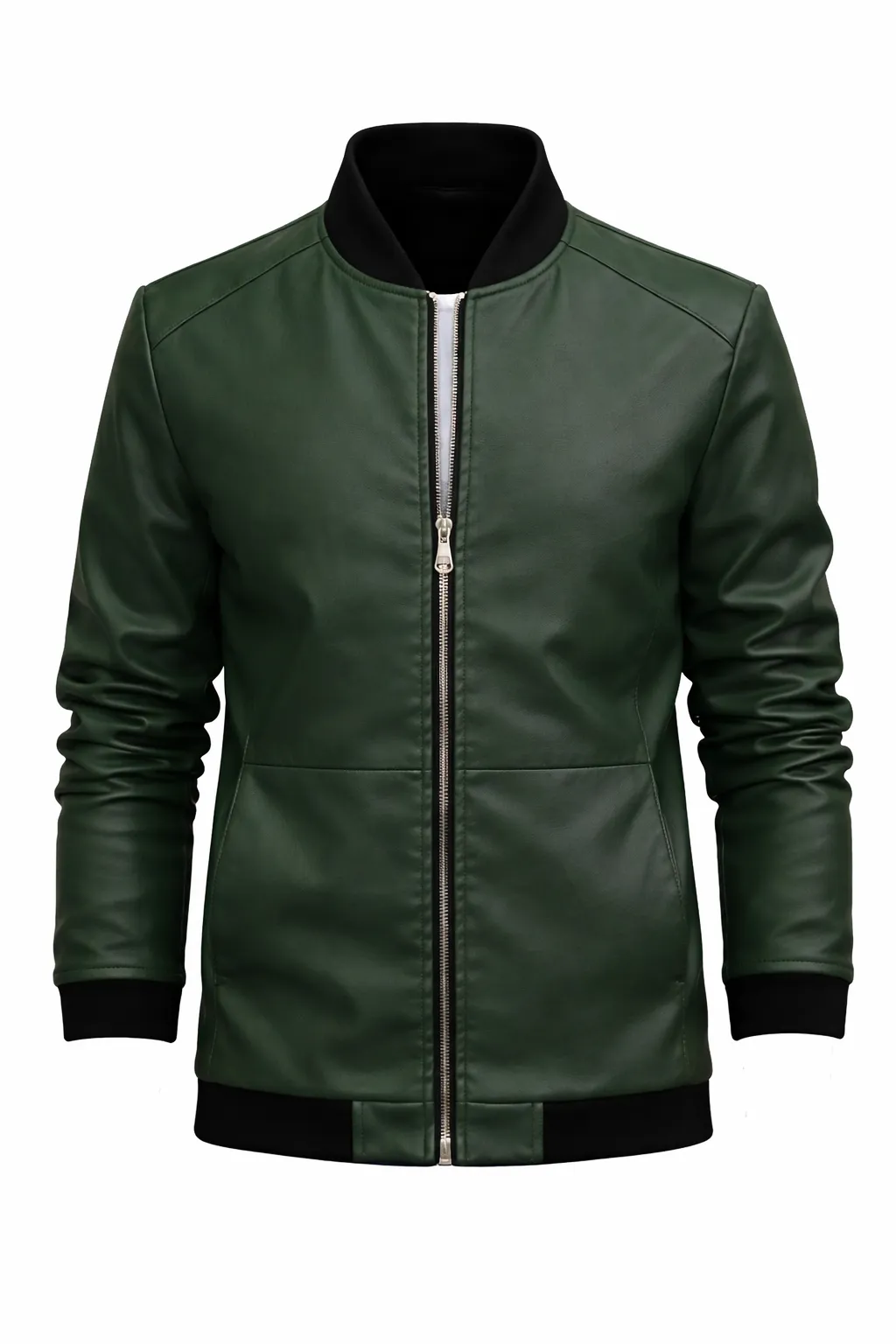 Men’s Olive Green Bomber Jacket – Slim Fit Zip Style